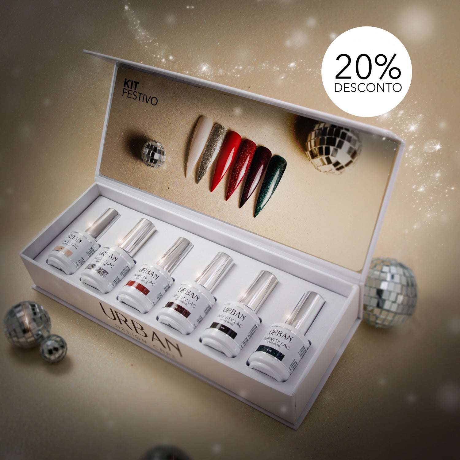 Descubra o nosso Kit tons festivos, com seis tons de verniz gel icónicos que não podem faltar nesta época.