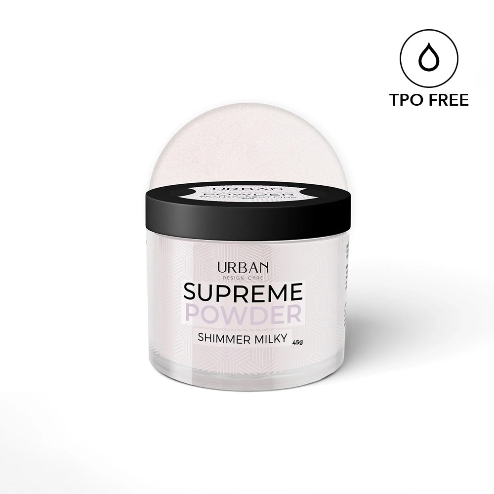 Pó de acrílico de construção, de cor natural, com brilho shimmer azulado muito fino e suave, para construir unhas artificiais.