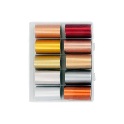Estojo de 10 cores de papel Foil, especialmente concebido para trabalhos de Nail Art.