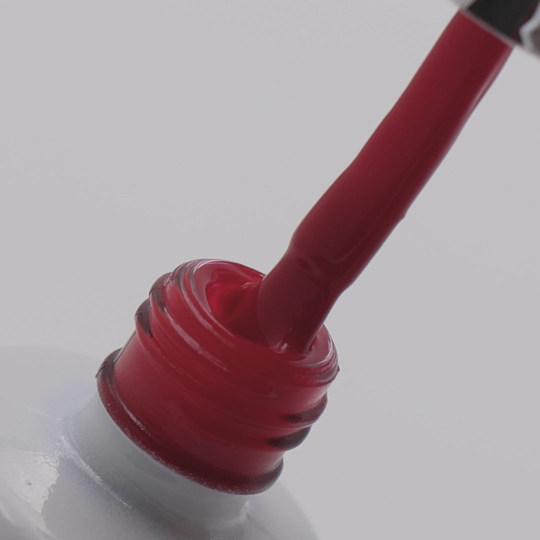 Descobre a cor de verniz gel Infinity Lac R10 de tom vermelho escuro, ideal para manicures clássicas e sofisticadas.