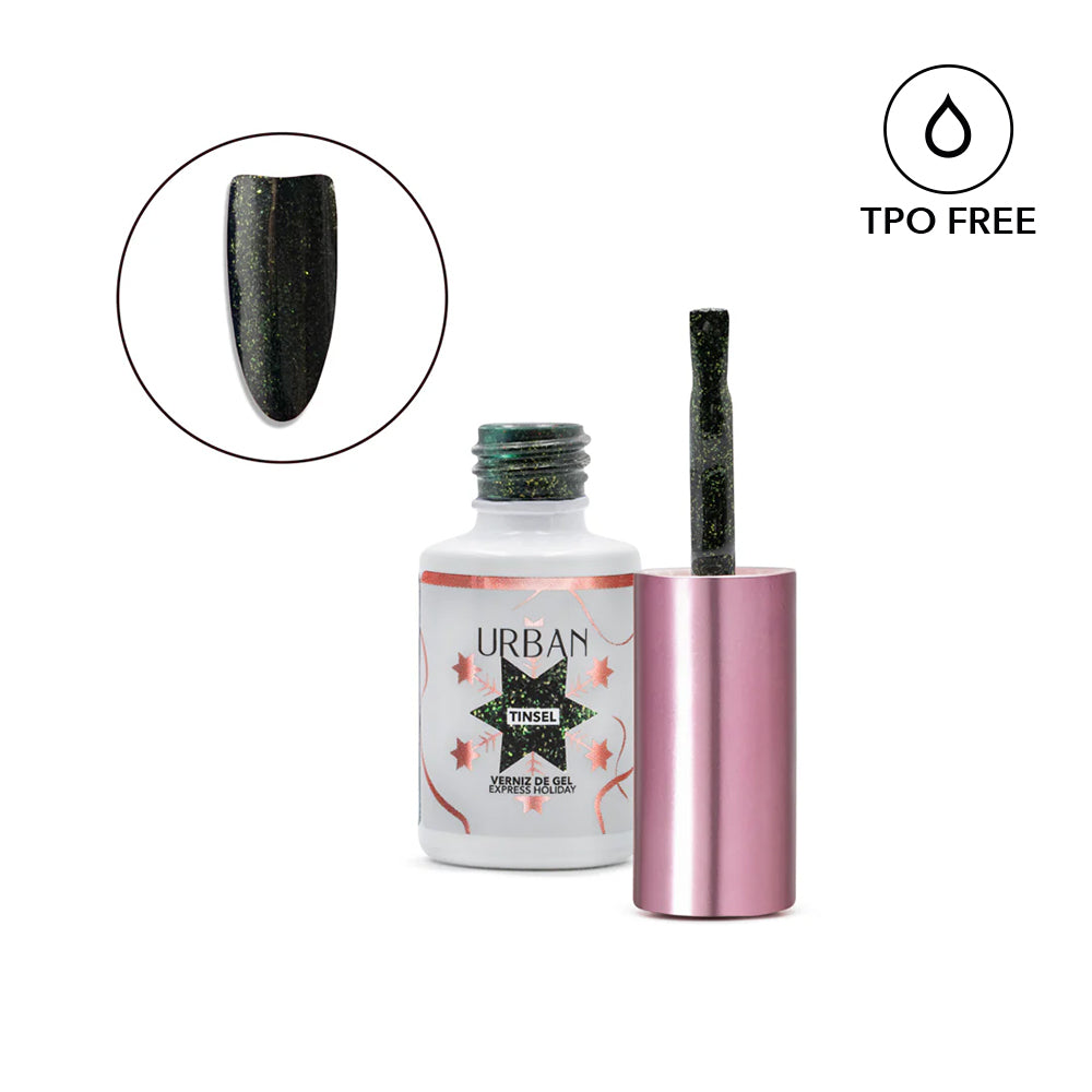 Verniz gel Express Holiday Tinsel é de alta pigmentação e de fácil aplicação, garante uma cobertura uniforme, sem manchas. Poderá ser aplicada na manicure em verniz gel e também depois da construção em gel, acrygel e acrílico (quando utilizada após a construção em acrílico deve ser combinada com base de aderência Extra Bond). Experimente a textura única e exclusiva desta gama de verniz gel e eleve o seu trabalho de manicure ao mais rigoroso padrão estético. O pincel incorporado na embalagem foi desenvolvido criteriosamente pelos nossos especialistas de forma a permitir uma aplicação tecnicamente perfeita, sem marcas.