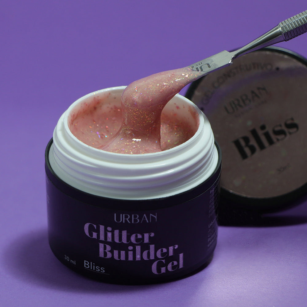 O Glitter Builder Gel Bliss é autonivelante e conta com pigmento estável, garantindo uma aplicação fácil e uniforme, além de um acabamento impecável. É a escolha certa para quem quer aliar resistência e estilo em cada manicure.