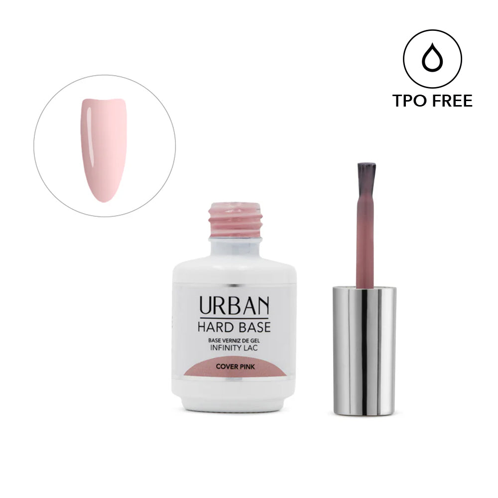 Descubra a Hard Base Cover Pink, uma base de aderência de elevada resistência com propriedades construtoras, ideal para reforçar a unha natural e preparar a superfície para aplicação de verniz gel.