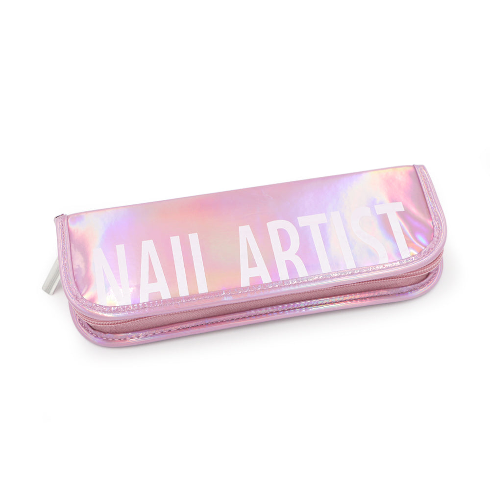 Bolsa Nail Art de cor-de-rosa holográfica. Esta bolsa tem capacidade para armazenar pincéis e utilitários.