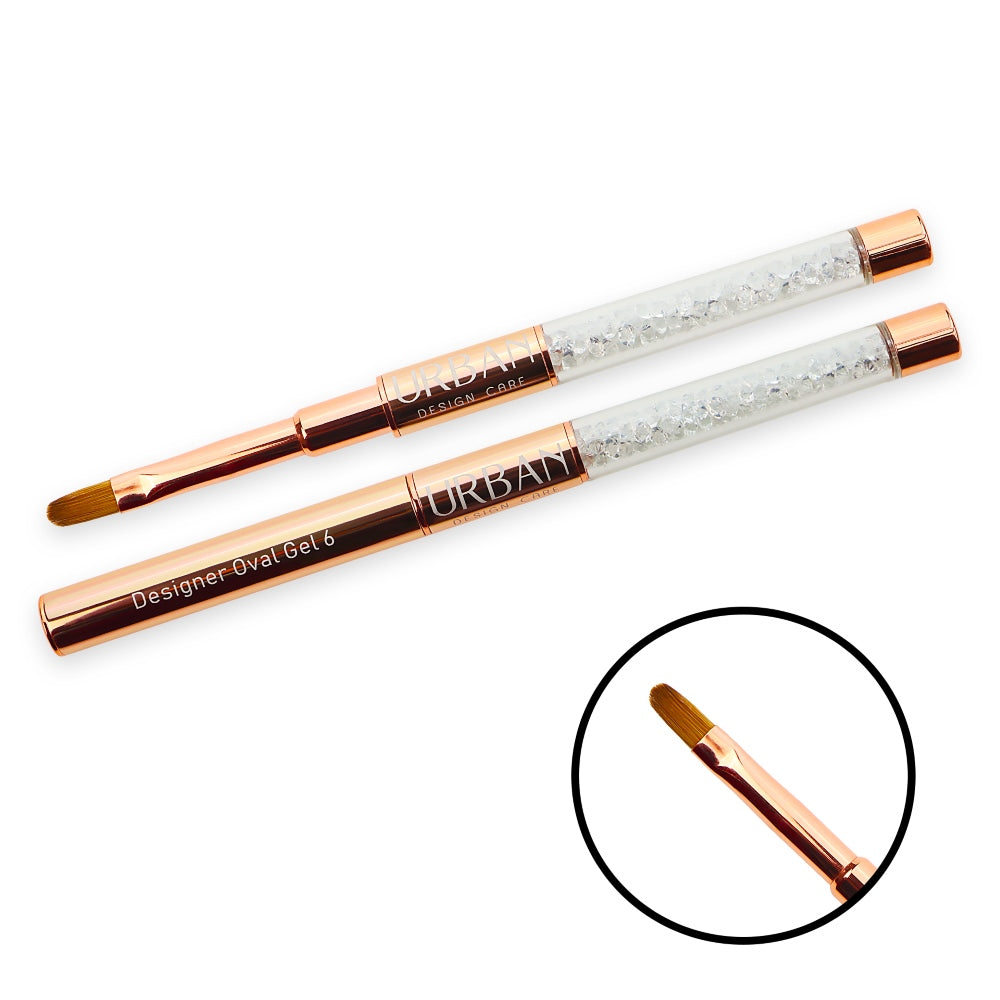 O Pincel Designer Oval Gel 6, da coleção Rose Gold, tem um design requintado e é de elevada qualidade. Este pincel é indicado para realizar a construção e a técnica de babyboomer em gel, devido à suavidade do pelo.